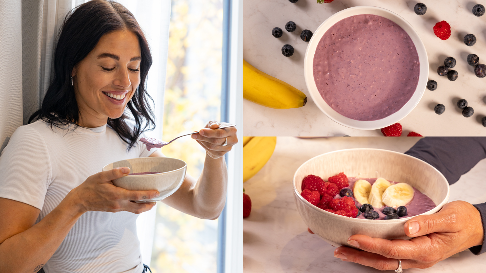 1. Overnight oats met banaan en bosbessen