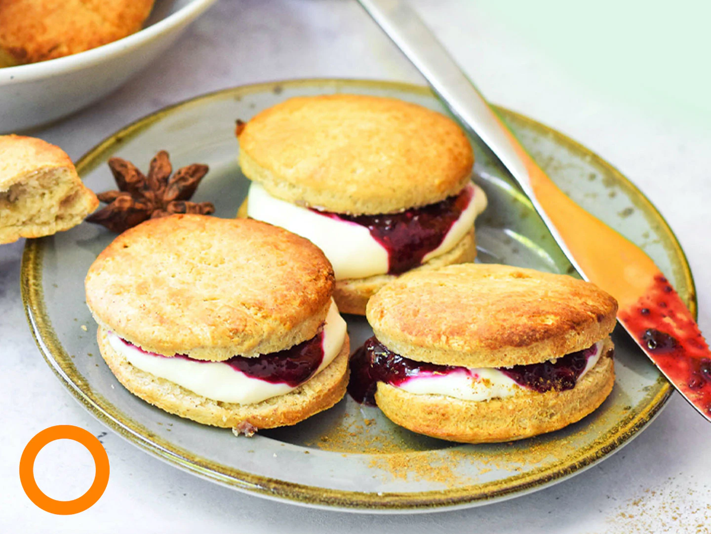• Zelfgemaakte scones met frambozen jam